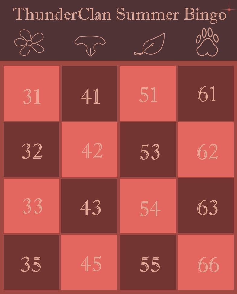 Thank you for participating in the THUNDERCLAN SUMMER PROMPT EVENT ! If you successfully got a ROW in bingo please post below to claim and list our your prompts WITH the number for that prompt!
