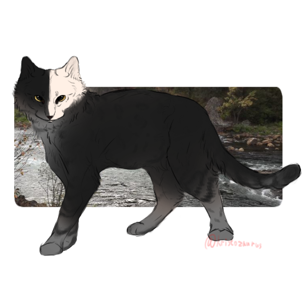 Those familiar with Riverclan's ranks are certain to recognize Juniperpaw. It's not just for her striking contrast of black and white fur (though her ever-swishing, striped tail does tend to tip off prey easily, to her clanmates' chagrin). Even more memorable is her doting disposition, more becoming of a medicine cat or caretaker than a warrior-to-be. Juniperpaw's pale honey-gold eyes are always seeking you out, monitoring your moods to ensure you're happy, searching for someone to give a smile to. At Gatherings and even on patrols, other clan's cats are treated by her just as sweetly as if they were her own littermate -- excepting Shadowclan. Cats from there, for whatever reason, tend to be treated a bit more coldly on first meet. Nevertheless, even a Shadowclanner can earn her friendship, and they oft do.